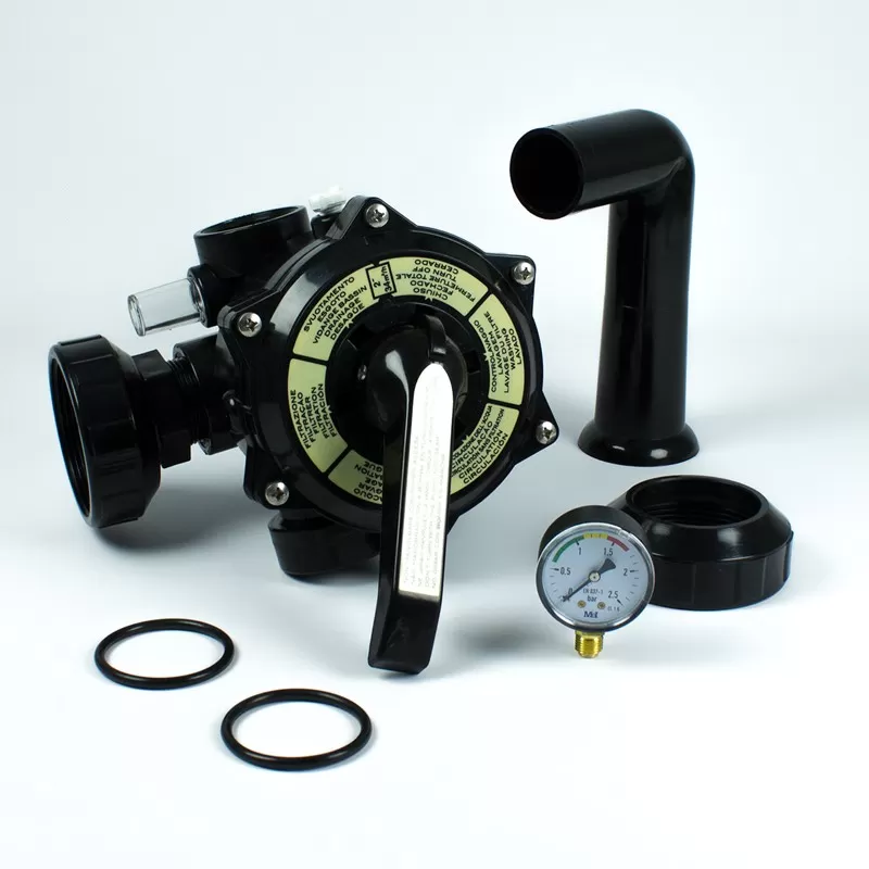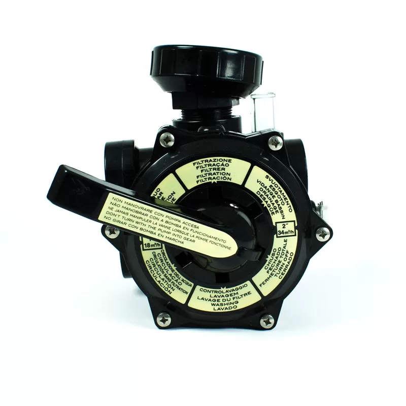 La válvula selectora es considerada un componente imprescindible en los filtros de arena para la depuración de las piscinas. A través de la maneta se consigue seleccionar entre las diferentes funciones en un circuito hidráulico: filtración, vaciado, cerrado, lavado, recirculación y enjuague del filtro.