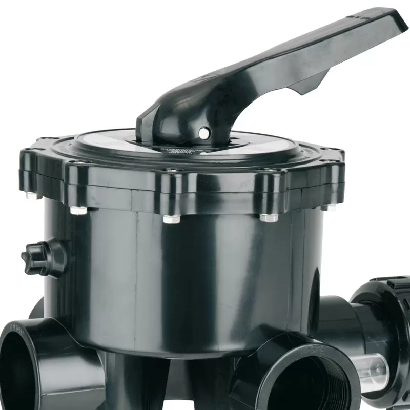 La válvula selectora es considerada un componente imprescindible en los filtros de arena para la depuración de las piscinas. A través de la maneta se consigue seleccionar entre las diferentes funciones en un circuito hidráulico: filtración, vaciado, cerrado, lavado, recirculación y enjuague del filtro.