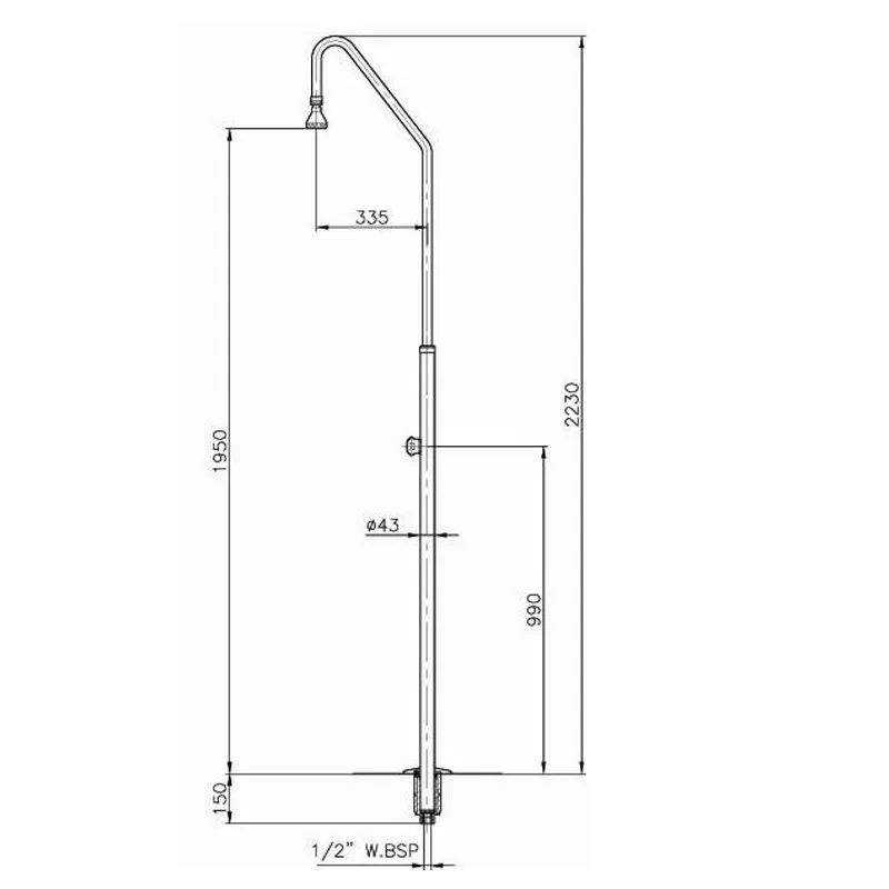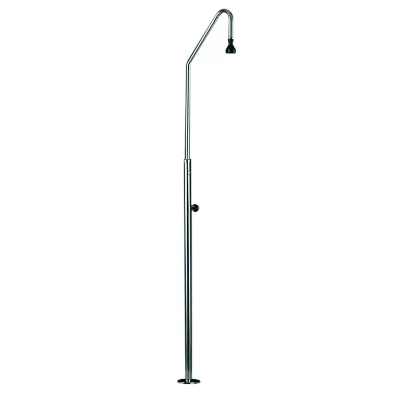 Ducha para piscina fabricada en acero inoxidable 18/8, tubo Ø 43con anclaje incorporado 00107 para aclar solidamente al suelo.
