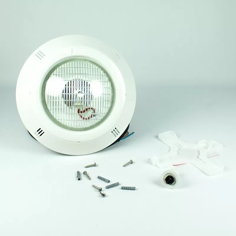 El proyector plano para piscina es la mejor opción para iluminar piscinas existentes. Rápida y cómodamente dará luz y vida a su jardín. Producido en poliamida y ABS, permanecerá inalterable a los agentes químicos y variaciones de temperatura durante años. Puede montarse fácilmente en cualquier instalación existente ya que no necesita nicho para su colocación. Se fija directa- mente a la pared mediante una cruz de plástico reforzado, tacos y tornillos.