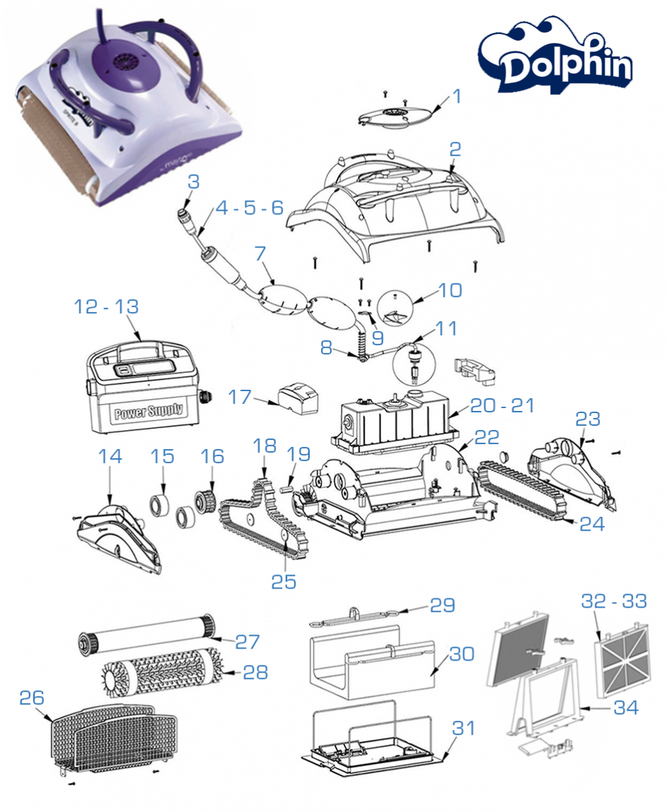 Recambio limpiafondos Dolphin Fuente de alimentación básica sin cable 9995670-ASSY