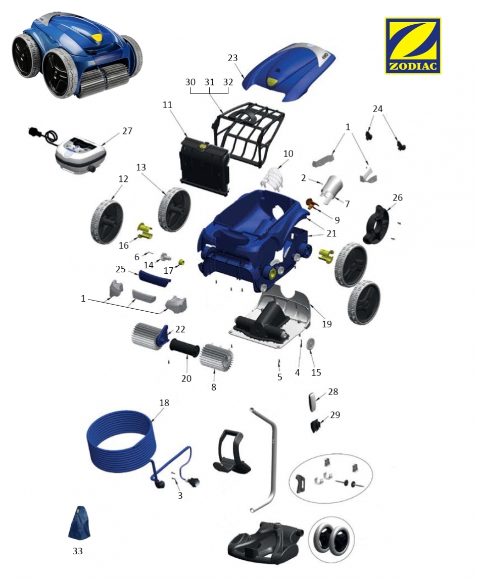 Recambio limpiafondos Zodiac Cuerpo completo 4WD azul