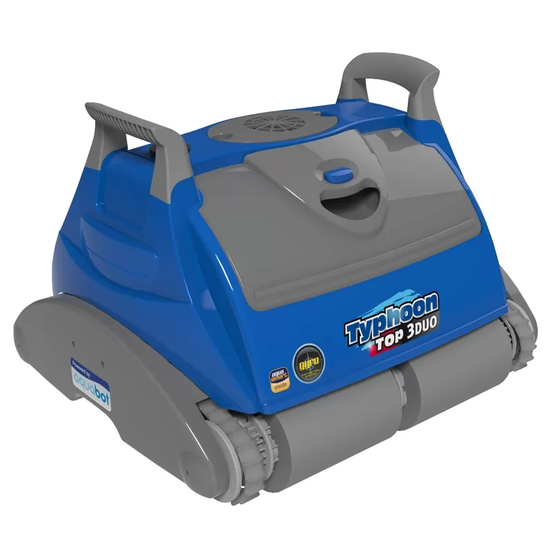 El limpiafondos Typhoon Top 3 Duo es el limpiafondos perfecto para piscinas de hasta 80 m2, con un peso mínimo y un diseño práctico y ergonómico, le permitirán dar una limpieza compleja y perfecta a su piscina. Gracias a su sistema electrónico AquaSmart deja suelo, la pared y la línea de flotación de la piscina totalmente limpios en un tiempo récord.