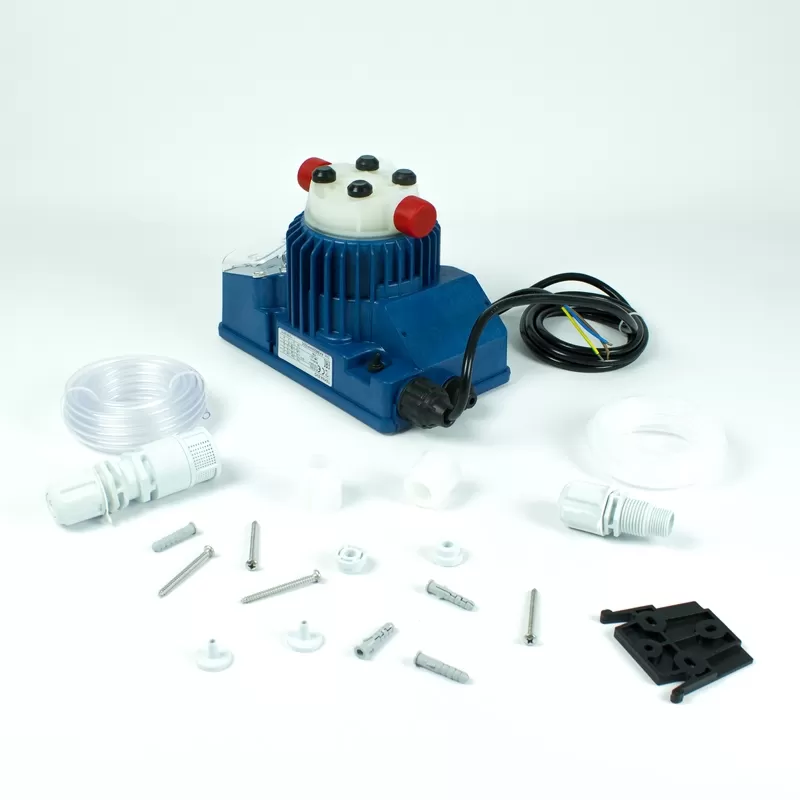 - Kit de instalación en PVDF-T (válvula inyección, filtro de pie y soporte)