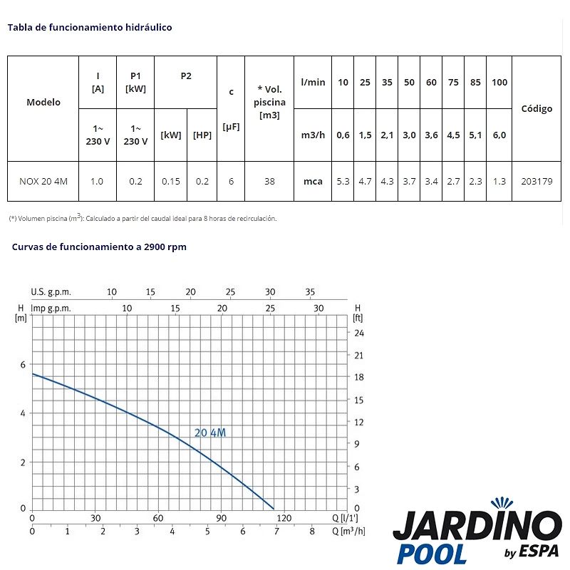 Bomba piscina Jardino Pool Nox 20 4M Monofásica