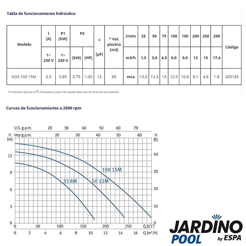 Bomba piscina Jardino Pool Nox 100 15M Monofásica