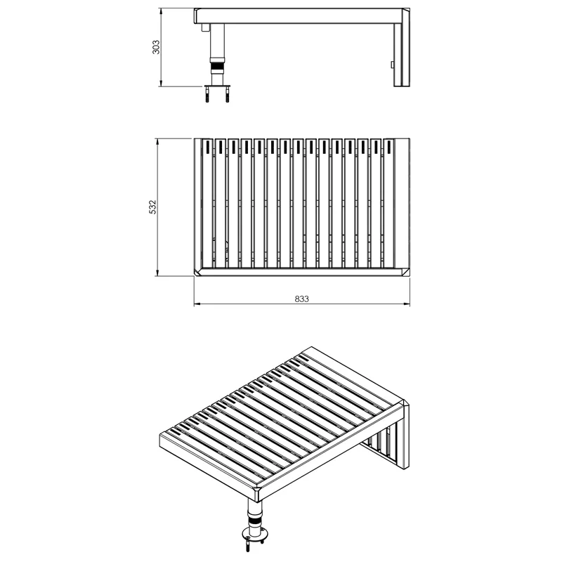 AstralPool ha creado una plataforma donde fijar los pódiums de salida. El producto está compuesto por una bancada en AISI-304 y rejillas en material plástico.