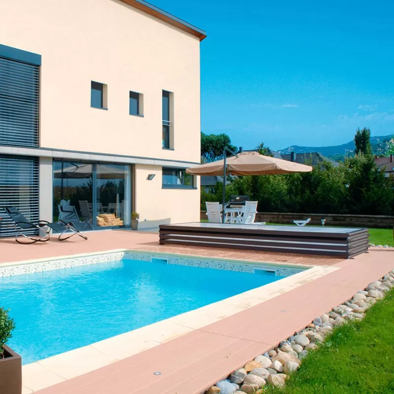- Die Module können angehoben und am Ende des Beckens gestapelt werden, so dass das Becken völlig frei ist.