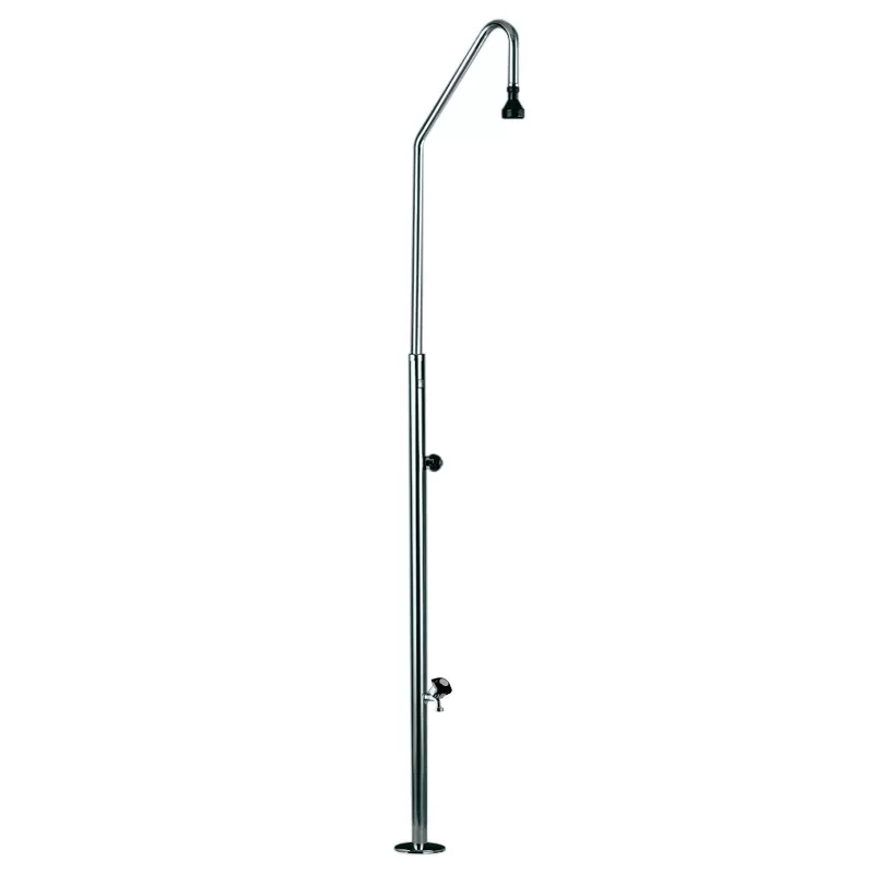 Schwimmbaddusche aus Edelstahl 18/8, Rohr Ø 43, mit eingebauter Verankerung 00107 zur festen Verankerung im Boden.