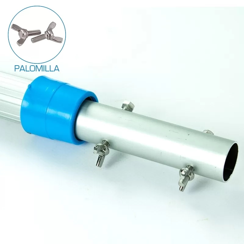Hergestellt aus eloxiertem Aluminium und Kunststoff. Kopplung durch ein System von Griffen, um einen besseren Halt zwischen dem Stiel und dem Reiniger oder Laubfänger zu gewährleisten.