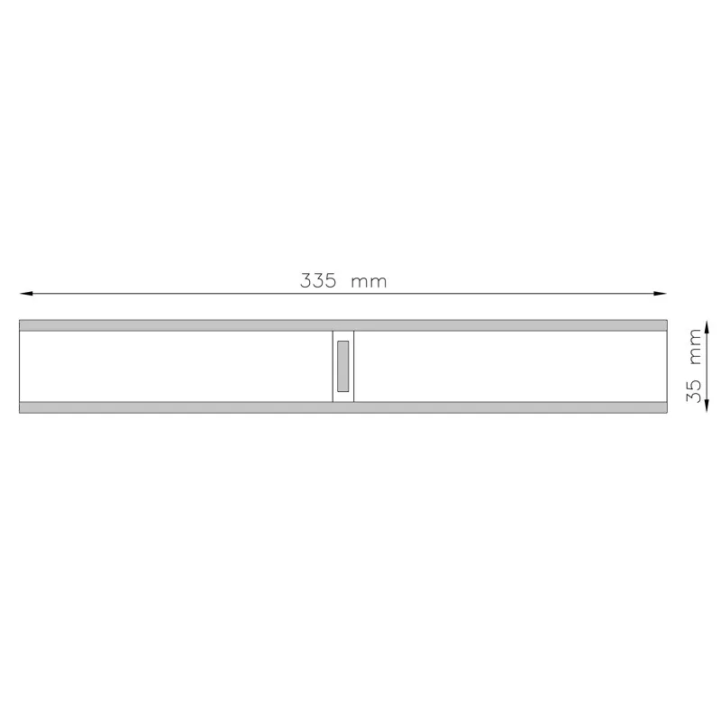 Die Maße sind: Höhe 35 mm und Breite 335 mm.