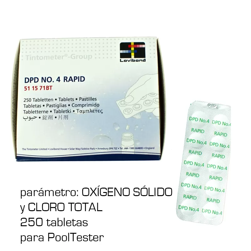 - Format of 250 tablets DPD No. 4 POOLTESTER