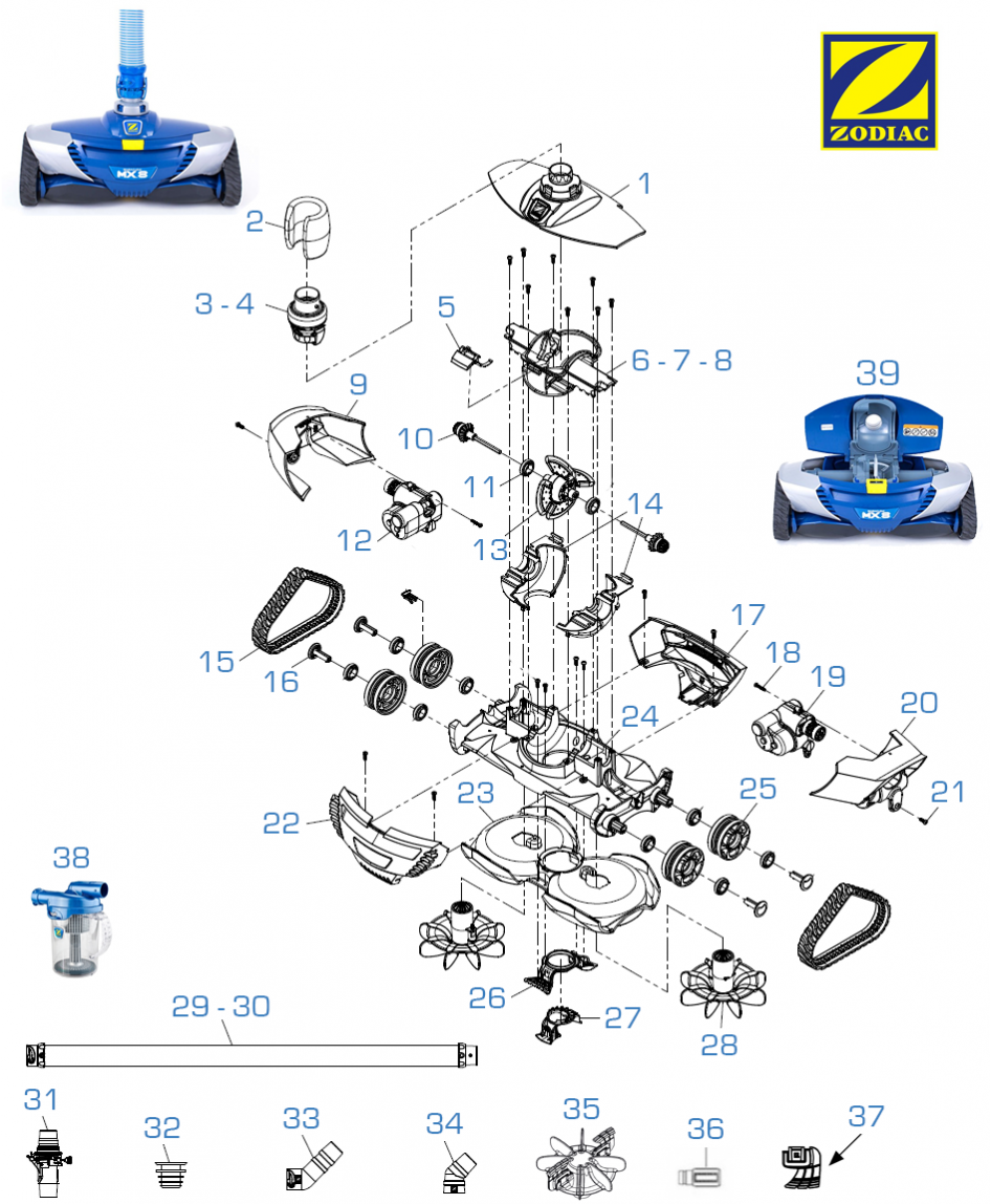 Replacement cleaner Zodiac MX8 lower housing
