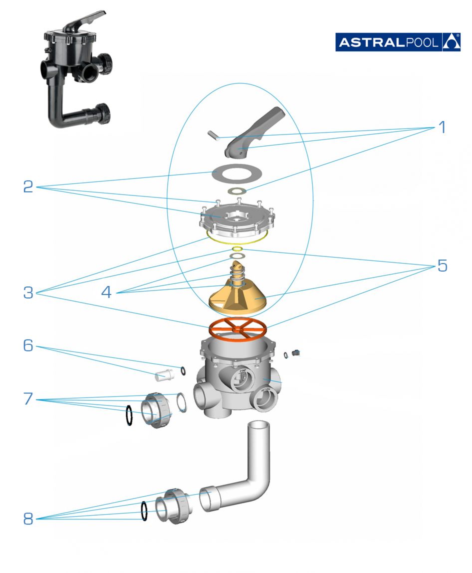 Replacement selector valve Astralpool Visor with gasket 4404120108