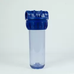 Description: Transparent 3-piece cartridge container for standard filter cartridges.