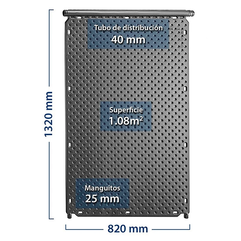 - Low pressure loss 0.003 bar at 200 l/h/m²