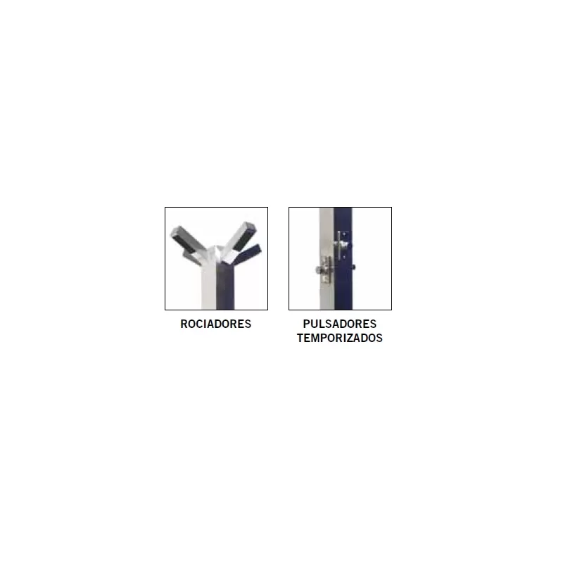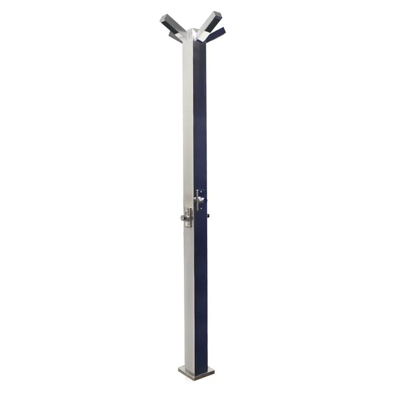 Public shower with 4 sprinklers and 4 timed valves. The application of timed technology avoids incensive water consumption. Ideal solution for public / semi-public swimming pools and beaches