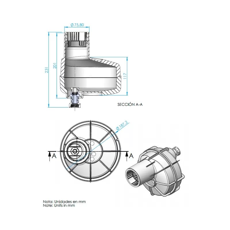 - The niche cable gland is accessible from the circular tube at the front.