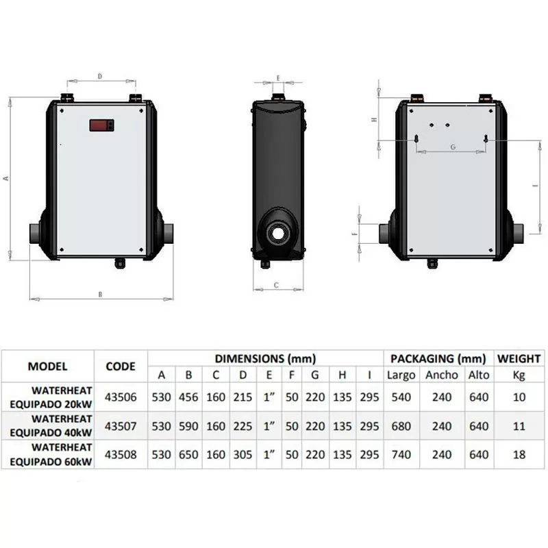 Caractéristiques techniques de l'échangeur de chaleur Astralpool Waterheat Equipé