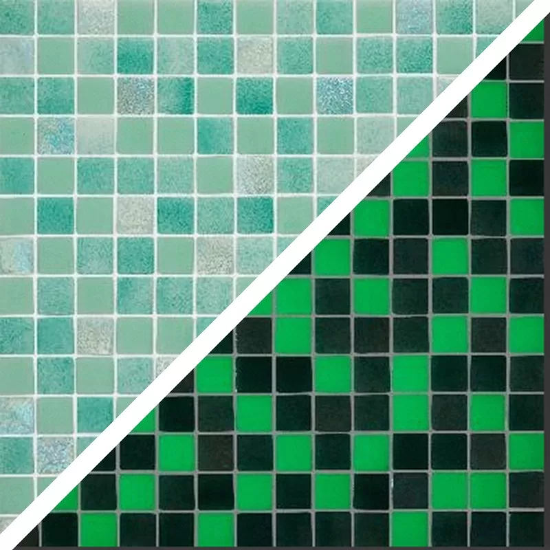 Chaque plaque de grès est composée de grès de 2,3 x 2,3 cm. Elles sont fabriquées uniquement avec du verre plat et des colorants céramiques, de sorte que les caractéristiques physiques et chimiques du produit sont les mêmes que celles du verre, offrant ainsi une hygiène extrême.