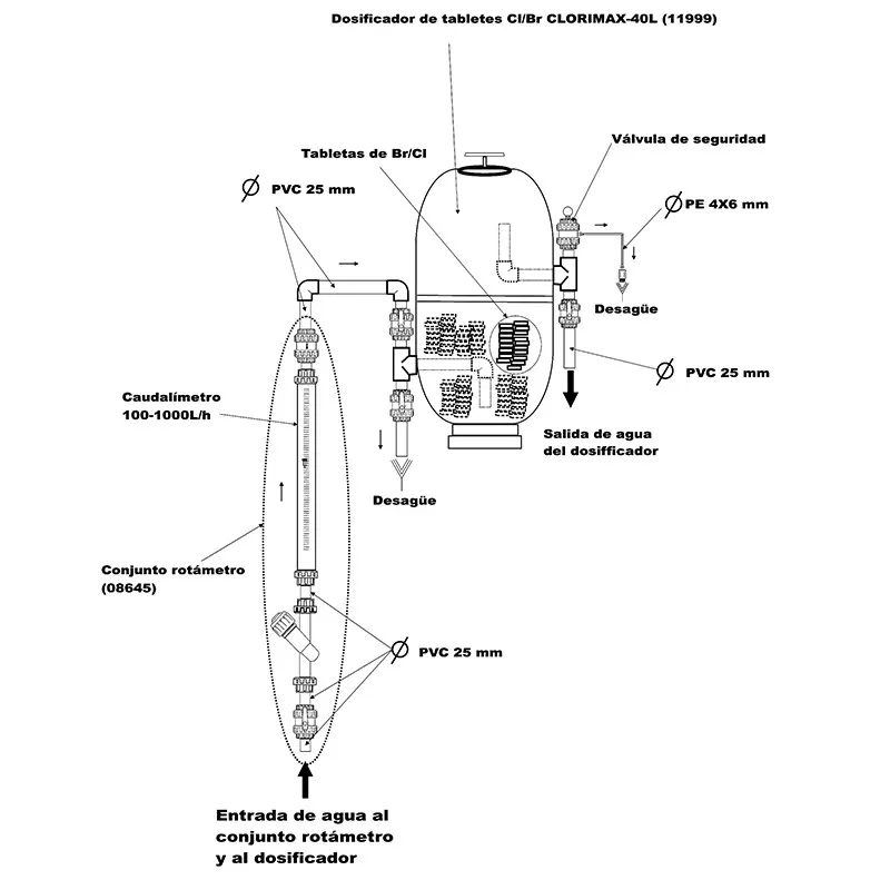 - Convient aux distributeurs de chlore et de brome de 40 lt