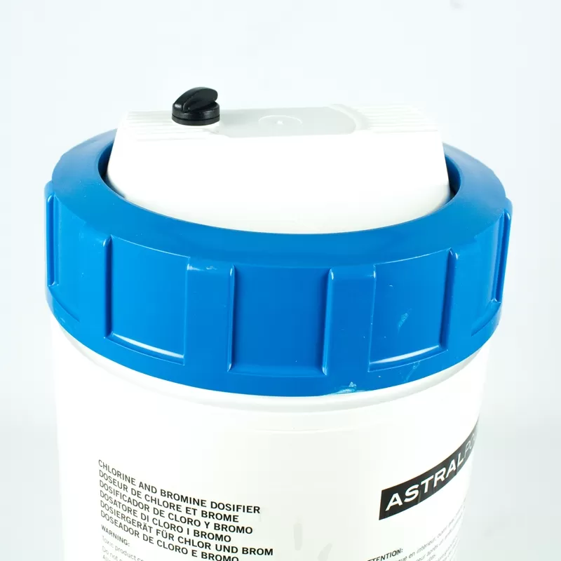 Distributeur d'une capacité de 5 kg de pastilles de trichlore pour les piscines jusqu'à 100 m3 et de brome pour les piscines jusqu'à 50 m3.