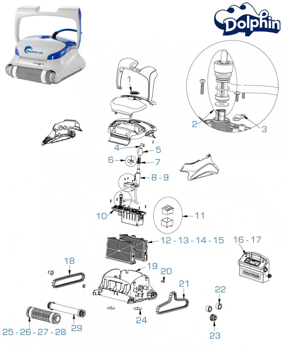 Ricambi per pulitori per piscine Dolphin Blocco motore Diag. 99953053-EX