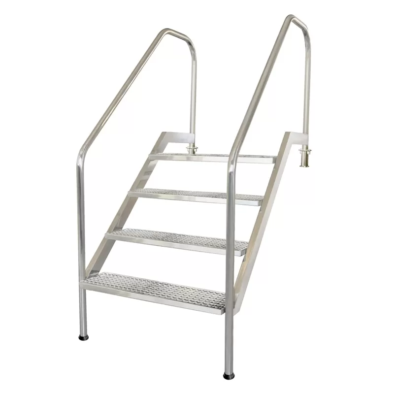 Scala ideale per piscine pubbliche, realizzata in acciaio inox AISI-316 con finitura lucida.