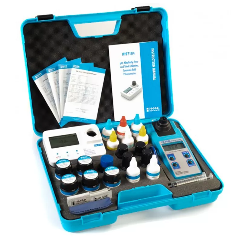 - Misuratore di cloro libero, cloro totale, pH, acido isocianurico, alcalinità e torbidità.
