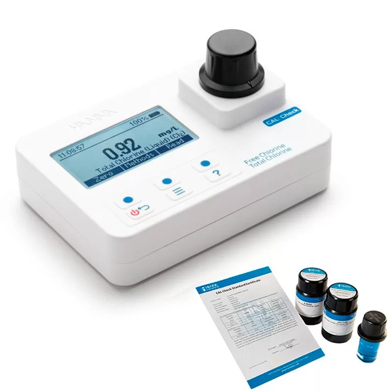 - Fornito con reagente, standard CAL Check, cuvette (2), tappi per cuvette (2), batterie AA 1,5 V (3), panno per la pulizia delle cuvette, forbici, certificato di qualità, custodia per il trasporto.