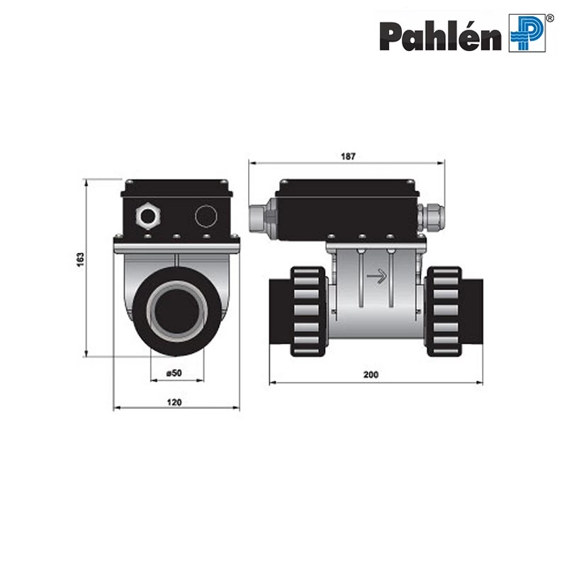- Piccolo e compatto, con una lunghezza di 200 mm e connessioni di 50 mm di Ø