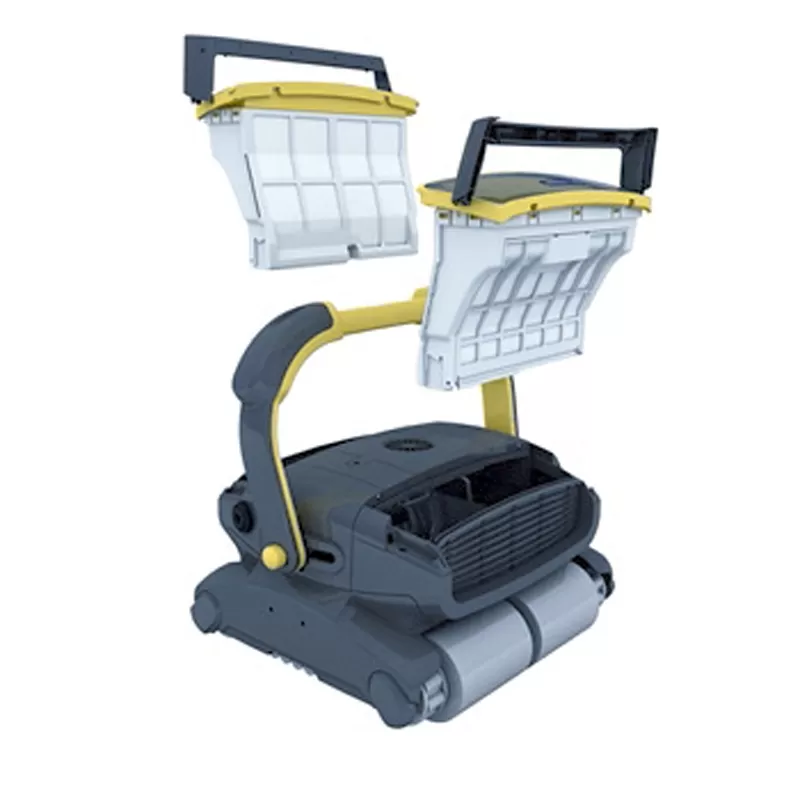 Nuovo pulitore robotico per piscine residenziali. Il robot Hurricane 7 Duo rimuove completamente lo sporco dal fondo, dalle pareti e dalla linea di galleggiamento della piscina in tempi record grazie al sistema di controllo elettronico Aquasmart e a un'efficiente spazzola di pulizia con movimento oscillante che rimuove lo sporco da qualsiasi superficie.
