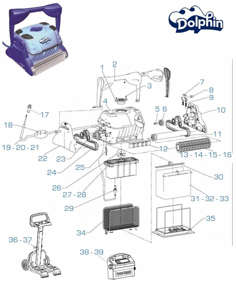 Dolphin Ricambi per pulitore per piscina Carrello 9996098-ASSY