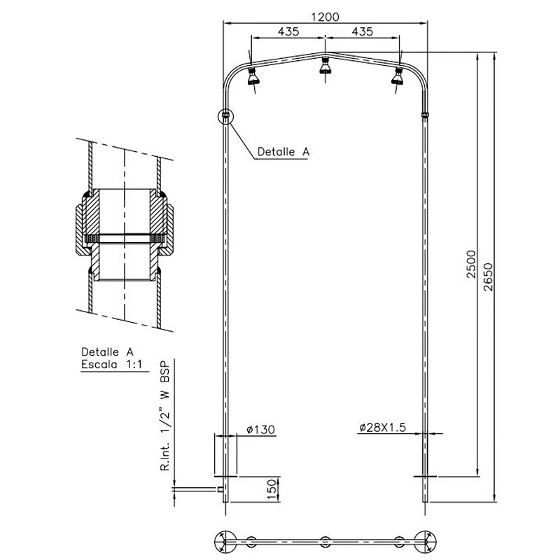 - Realizzato in acciaio inox AISI 304 con tubo Ø 28 mm.