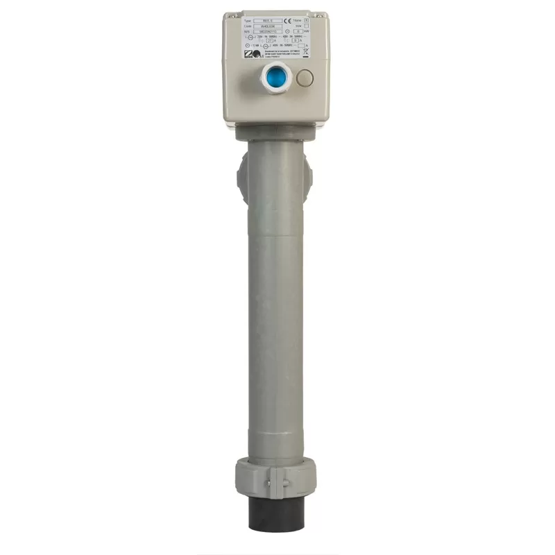 I riscaldatori elettrici Zodiac-PSA sono costituiti da un tubo in poliammide e da un elemento riscaldante in titanio. L'acqua viene riscaldata quando entra in contatto con la resistenza all'interno del tubo.