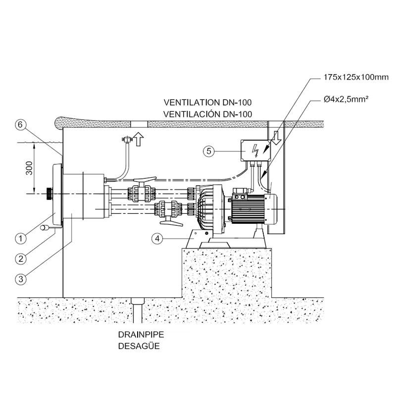 - L'apparecchiatura, in particolare l'ugello, deve essere installata a una profondità minima di 30 cm sotto il livello dell'acqua. In caso contrario, l'aria potrebbe essere aspirata.