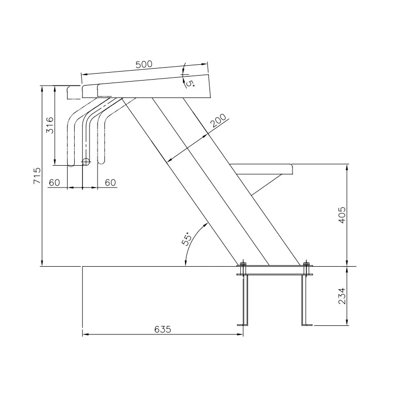 - Realizzato in acciaio inox. AISI-316 e piattaforma antiscivolo in poliestere e FV