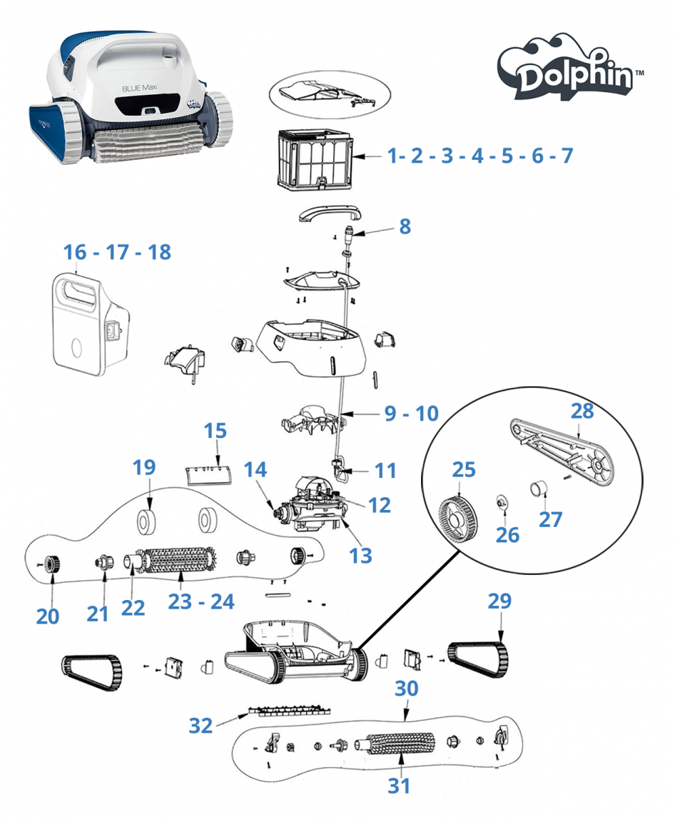 Onderdelen voor Dolphin Blue Maxi 30