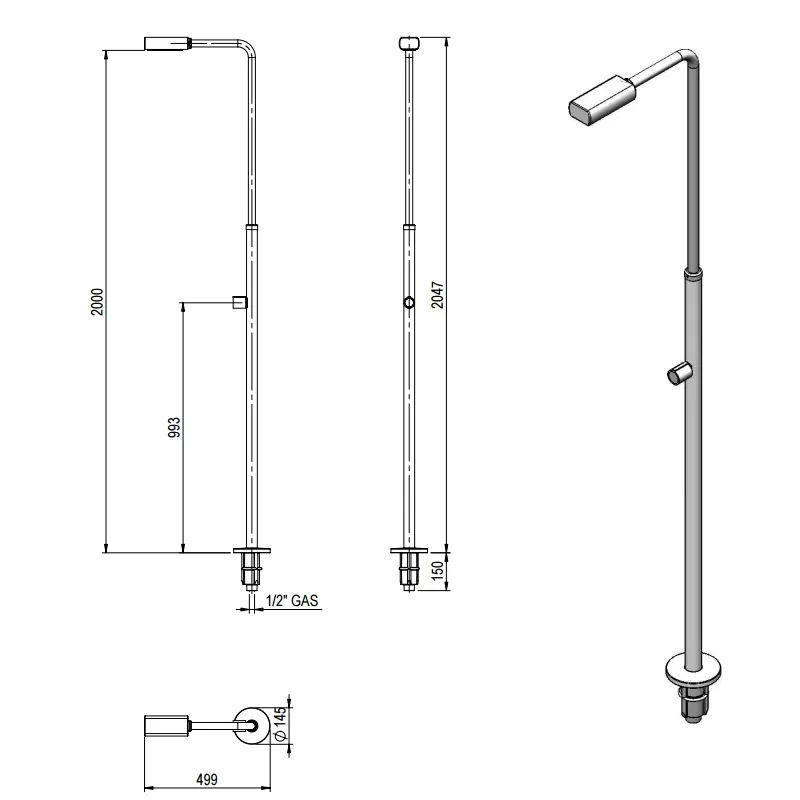 Technische kenmerken van de GRE Minimal zwembaddouche met 1 sproeikop: