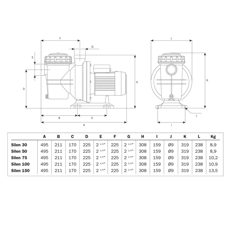 Kenmerken van de zwembadpomp Espa Silen 75 Driefasig.