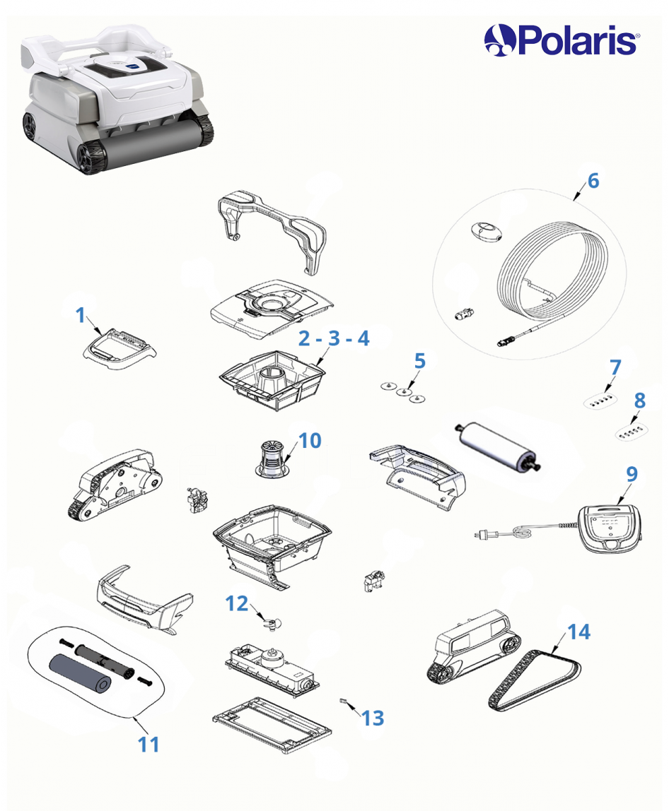 Onderdelen voor zwembadreiniger Zodiac Cassette motor zijwaartse trekkracht RAL9022
