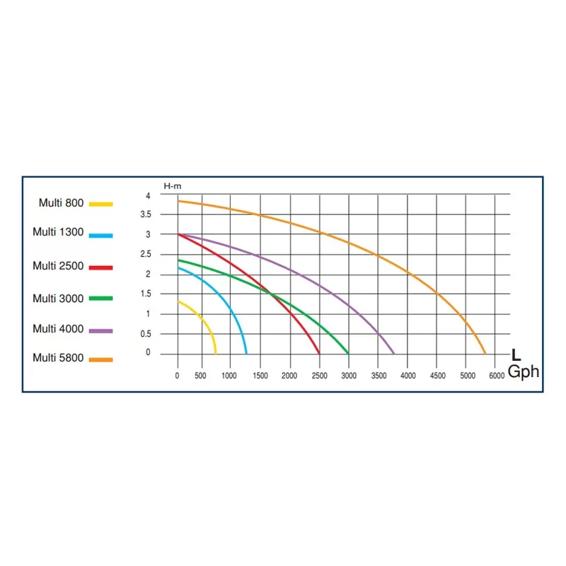 De Multi lijn omvat recirculatiepompen voor elk type meer tot 10.000 liter, van de 800 l/u tot het krachtige 5.800 l/u model.