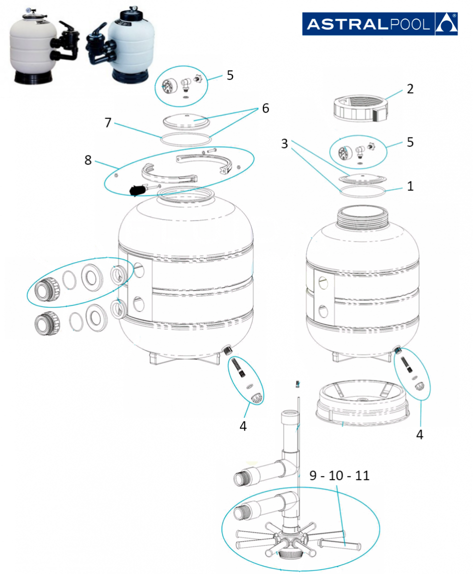 Onderdelenfilter Astralpool Millenium-zijde (met schroefdraad)
