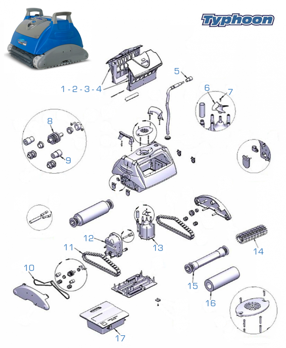 Onderdelen voor zwembadreinigers Typhoon
