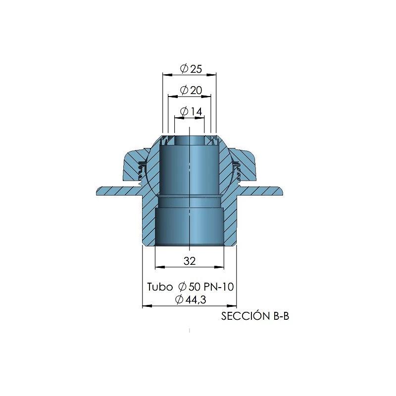 - Te lijmen in buis Ø 50 mm PN 10.