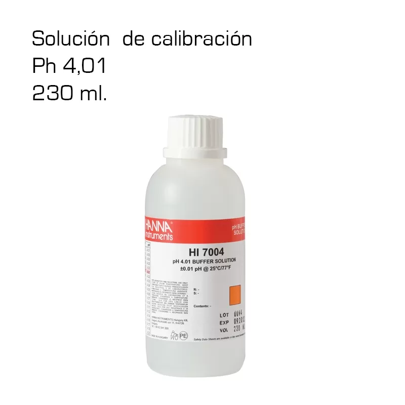 De pH4.01 kalibratiebufferoplossing is vervaardigd volgens ISO 3696 / BS3978 normen met gebruik van zeer zuivere zouten, gedeïoniseerd water, gecertificeerde gewichtsgecontroleerde balansen en klasse A glaswerk in een gecontroleerde omgeving met gecertificeerde thermometers.