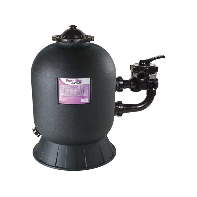 - Filtro de areia Hayward Powerline com saída lateral para a filtração da água da piscina.