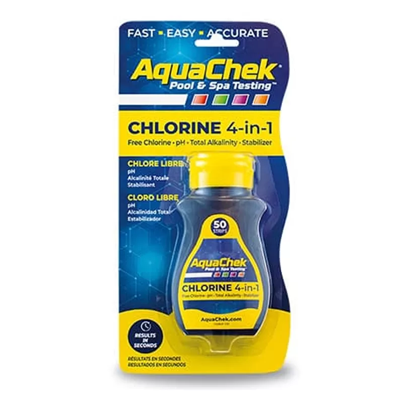 Estas tiras efectuam quatro testes importantes com um único mergulho: cloro livre, pH, alcalinidade total e ácido cianúrico. Estes testes ajudam a manter a água limpa, a prevenir a corrosão e a evitar alterações súbitas do pH.