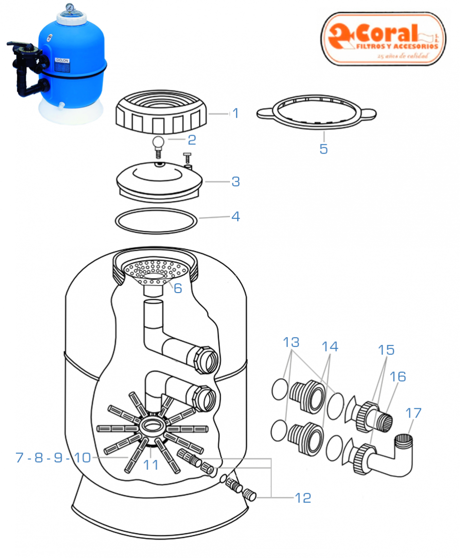 Coral Filtro de substituição Difusor superior (D.400 a 650)