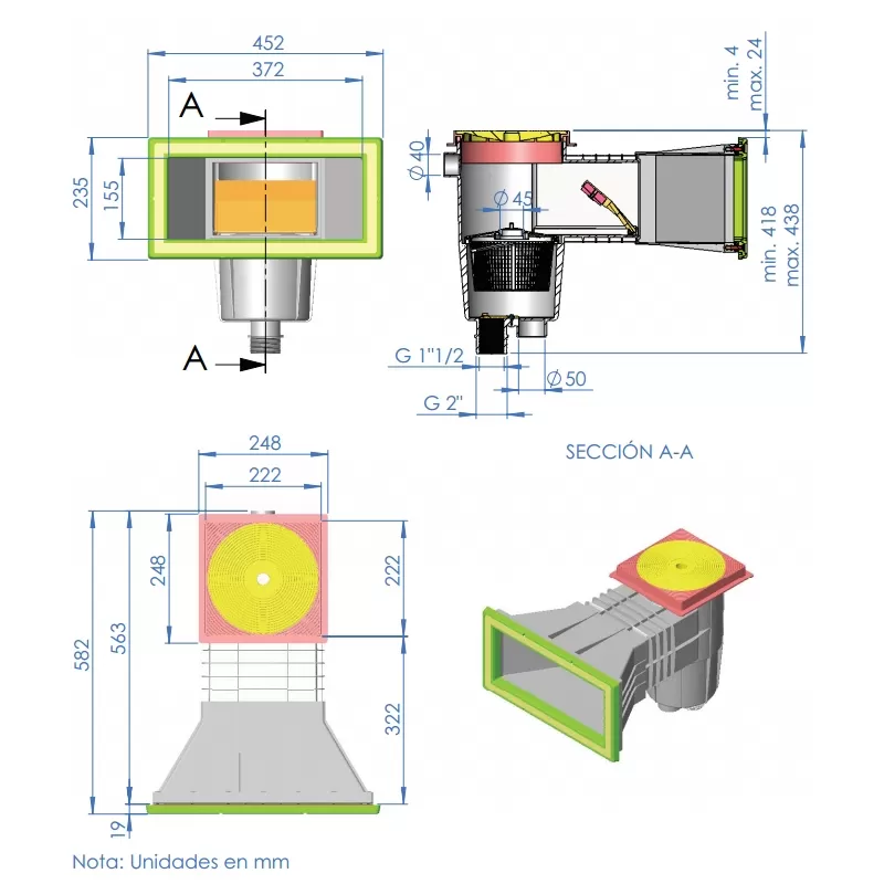 - Skimmer com cobertura quadrada.